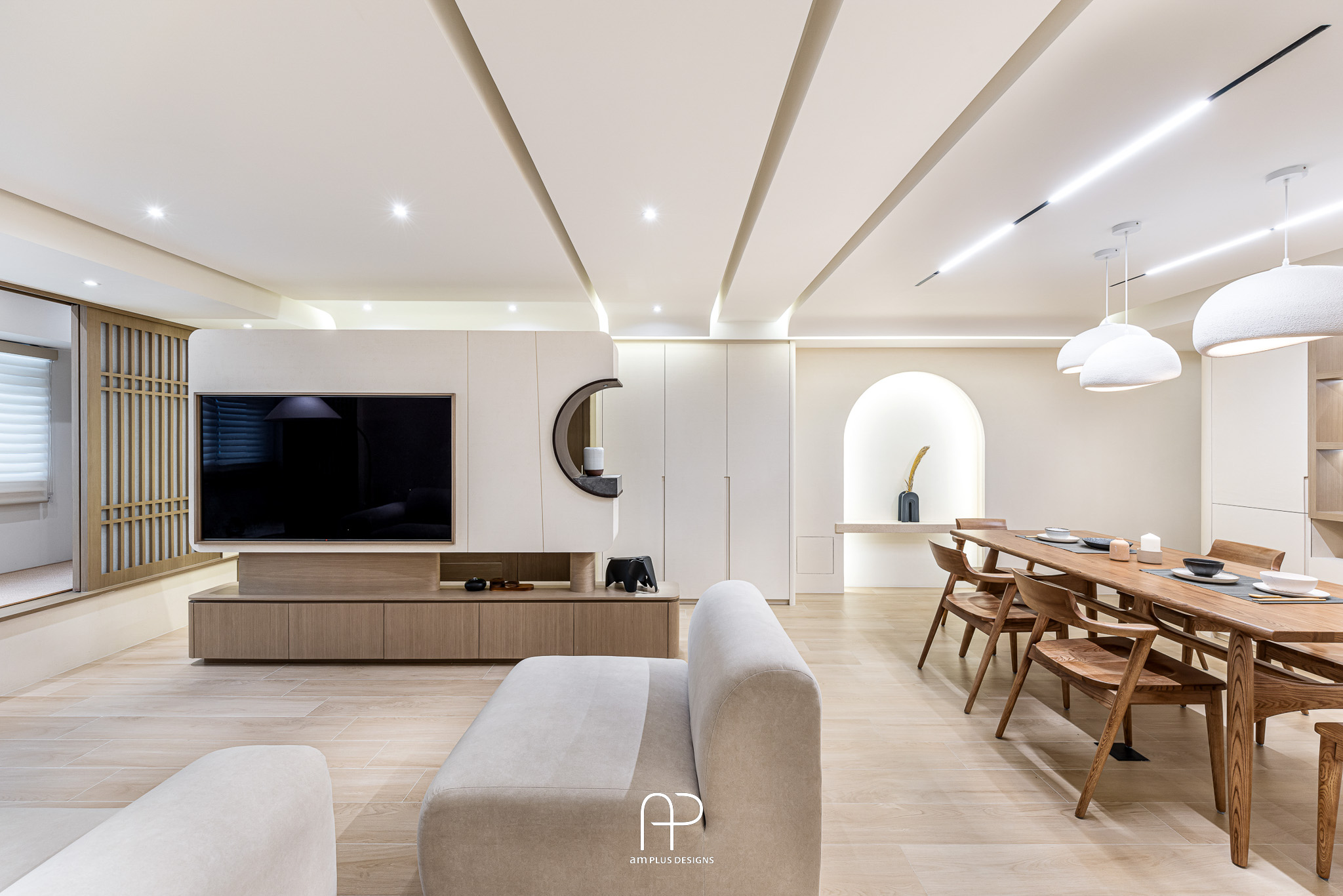 以純正的日式設計風格為核心理念。這個都市居所為戶主一家三口精心設計,旨在為他們於忙碌的都市節奏中,締造一個舒適、寧靜且實用的生活空間。